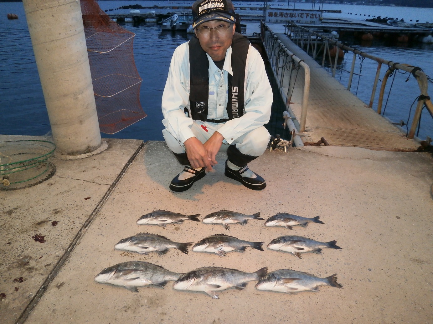 森本氏(左)・清田氏(右) 釣果 伊丹市よりご来場 1号筏 チヌ25cm~35cm 11匹 餌:カニ・オキアミ 2014.10.06 吉川氏 釣果 速見郡よりご来場 3号筏(向かって左側) チヌ47cm他7匹 餌:ボケ・オキアミ 2014.10.06 秋季チヌ釣り大会の順延について 台風18号の接近のため10月5日の秋季チヌ釣り大会を順延いたします。 順延日は11月2日(日)・11月23日(日)のどちらかに予定しています。 決まり次第ご報告いたします。 2014.10.04 篠崎氏 釣果 伊予市よりご来場 3号筏(向かって左側) チヌ30cm~42cm 16匹 餌:カニ・シラサなど 2014.09.29 岡氏 釣果 倉敷市よりご来場 1号筏 チヌ30cm前後 6匹 餌:カニ・オキアミ 2014.09.26 松岡グループ 釣果 大阪市よりご来場 1号筏~3号筏 チヌ48cm頭で34匹 餌:カニ・オキアミ他 1年ぶりのご来場で楽しんでくれました。 2014.09.25 黒川氏 釣果 西条市よりご来場 9号筏 チヌ25cm~38cm 9匹 餌:サナギ・カニ他 流れが速く釣りづらかったです。 2014.09.25 山橋氏 釣果 神戸市よりご来場 3号筏 チヌ30cm前後~41cm 17匹 餌:ボケ・カニ他 2014.09.22 山本氏 釣果 西宮市よりご来場 3号筏 チヌ43cm他 8匹 餌:カニ・ボケ他 2014.09.22 八木夫妻 釣果 京都市よりご来場 1号筏 チヌ25cm~38cm 13匹 キビレ他 餌:カニ他 奥さんの勝ち!! 2014.09.22 赤澤氏 釣果 東かがわ市よりご来場 1号筏 チヌ40cm他 22匹 餌:シラサ・カニ他 一緒にご来場の 香川氏 7匹 井上氏 5匹 2014.09.22 篠崎氏 釣果 伊予市よりご来場 3号筏 チヌ25cm~41cm 9匹 餌:カニ・シラサ他 2014.09.22 山下氏 釣果 坂出市よりご来場 9号筏 チヌ38cm他 11匹 クエ44cm 餌:カニ・オキアミ 2014.09.22 広部氏 釣果 奈良県よりご来場 3号筏 チヌ20㎝~35cm 17匹 餌:カニ・オキアミ 午前中は全く釣れず午後から釣れました。 2014.09.22 大西氏 釣果 松山市よりご来場 9号筏 チヌ30cm~40cm 4匹 餌:オキアミ他 2014.09.18 篠崎氏 釣果 伊予市よりご来場 3号筏 チヌ25cm~35cm 24匹 キビレ 2匹 餌:カニ・シラサ他 2014.09.15 山本氏 釣果 西宮市よりご来場 1号筏 チヌ35cm前後 24匹 キビレ 5匹 餌:カニ・ボケ他 2014.09.15 渡辺氏 釣果 伊方町よりご来場 1号筏 チヌ25cm前後 9匹 キビレ 2匹 餌:オキアミ 2014.09.15 赤澤氏 釣果 東かがわ市よりご来場 1号筏 チヌ25cm~30cm他 餌:シラサ他 写真は赤澤さんの甥っ子の森本りょう君 2014.09.15 古川氏 釣果 新居浜市よりご来場 3号筏 チヌ25cm~30cm 11匹 キビレ25cm~35cm 6匹 餌:カニ他 2014.09.15 76 / 93« 先頭«...102030...7475767778...90...»最後 » (旧)釣果速報はこちら